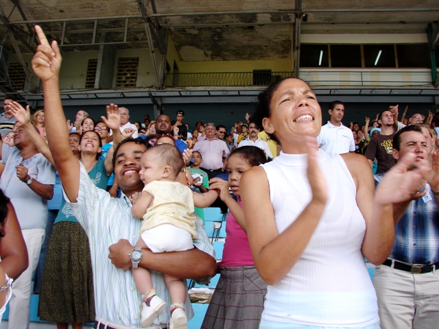 LA HABANA, CUBA.- El 11 de julio 2009, miles de cristianos de diversas denominaciones evangélicas se reunieron en un culto público en el estadio «Pedro Marrero».
