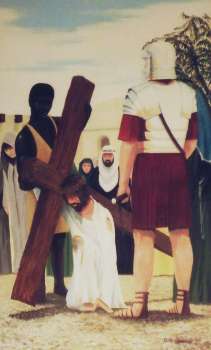 Su cruz sobre la espalda;