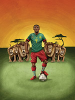 A nivel de futbol, Camerún es una potencia deportiva en el continente africano. Pero en la historia de los mundiales sólo ha participado en cinco, teniendo en todos una participación muy indiscreta. Por ejemplo, en el mundial de 1990 en Italia venció en su primer partido a Argentina (el entonces campeón mundial) por 1-0, para terminar primero de su grupo y llegar hasta los cuartos de final. Su jugador más memorable, famoso y querido fue Roger Milla, quien fue el goleador del equipo, a pesar de nunca ser titular. También en youtube podemos ser testigos de su forma impresionante de anotar goles y celebrarlos además.