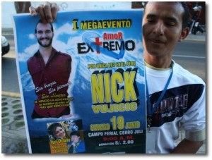 Del 9 al 23 de junio, 2010 Yaceli Ovando (de Tlaxcala, México), Hector Parra (de San Benito, Guatemala), y su servidor fuimos como misioneros voluntarios a Arequipa, Perú. Evangelizamos y pasamos mucho tiempo promocionando el gran evento que se iba a realizar el 19 de junio. Esperábamos mucha gente, y la Iglesia del Nazareno allí había pasado meses promoviendo y anunciando la llegada de muchos invitados especiales como Nick Vujicic, Felix Vargas, etc. Aunque hay 55,000 nazarenos en el país de Perú, sólo 350 viven en el sur de Perú, donde estábamos. Este evento fue bien planificado y bien organizado, pero fue docenas de veces más grande y espeluznante de lo que la Iglesia había hecho en ese país hasta esa fecha.