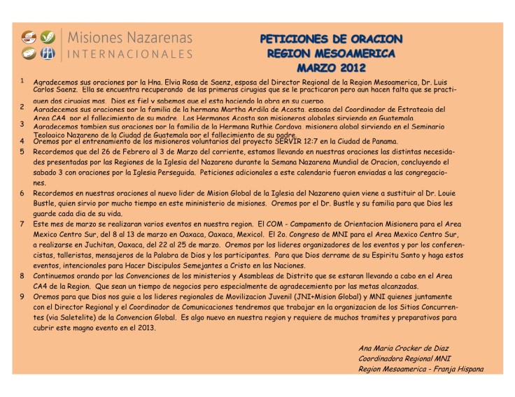 Calendario de Oración — Marzo 8.954007 -79.538894 Comparte esto: Comparte en Facebook (Se abre en una ventana nueva) Facebook Compartir en X (Se abre en una ventana nueva) X Enviar un enlace a un amigo por correo electrónico (Se abre en una ventana nueva) Correo electrónico Me gusta Cargando... Relacionado Deja un comentario Cancelar la respuesta Δ