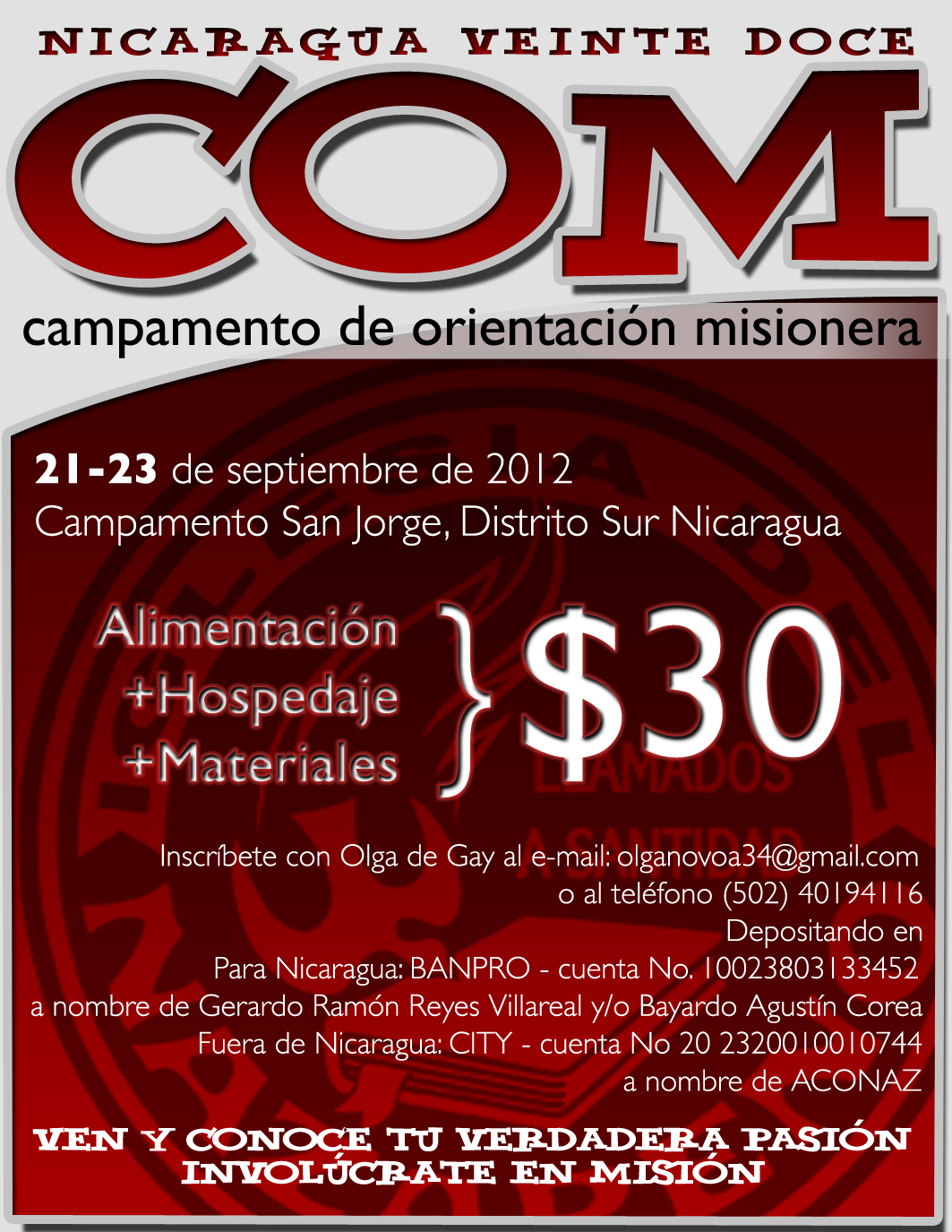 Campamento de Orientación Misionera: Nicaragua 2012 8.954007 -79.538894 Comparte esto: Comparte en Facebook (Se abre en una ventana nueva) Facebook Compartir en X (Se abre en una ventana nueva) X Enviar un enlace a un amigo por correo electrónico (Se abre en una ventana nueva) Correo electrónico Me gusta Cargando... Relacionado Deja un comentario Cancelar la respuesta Δ