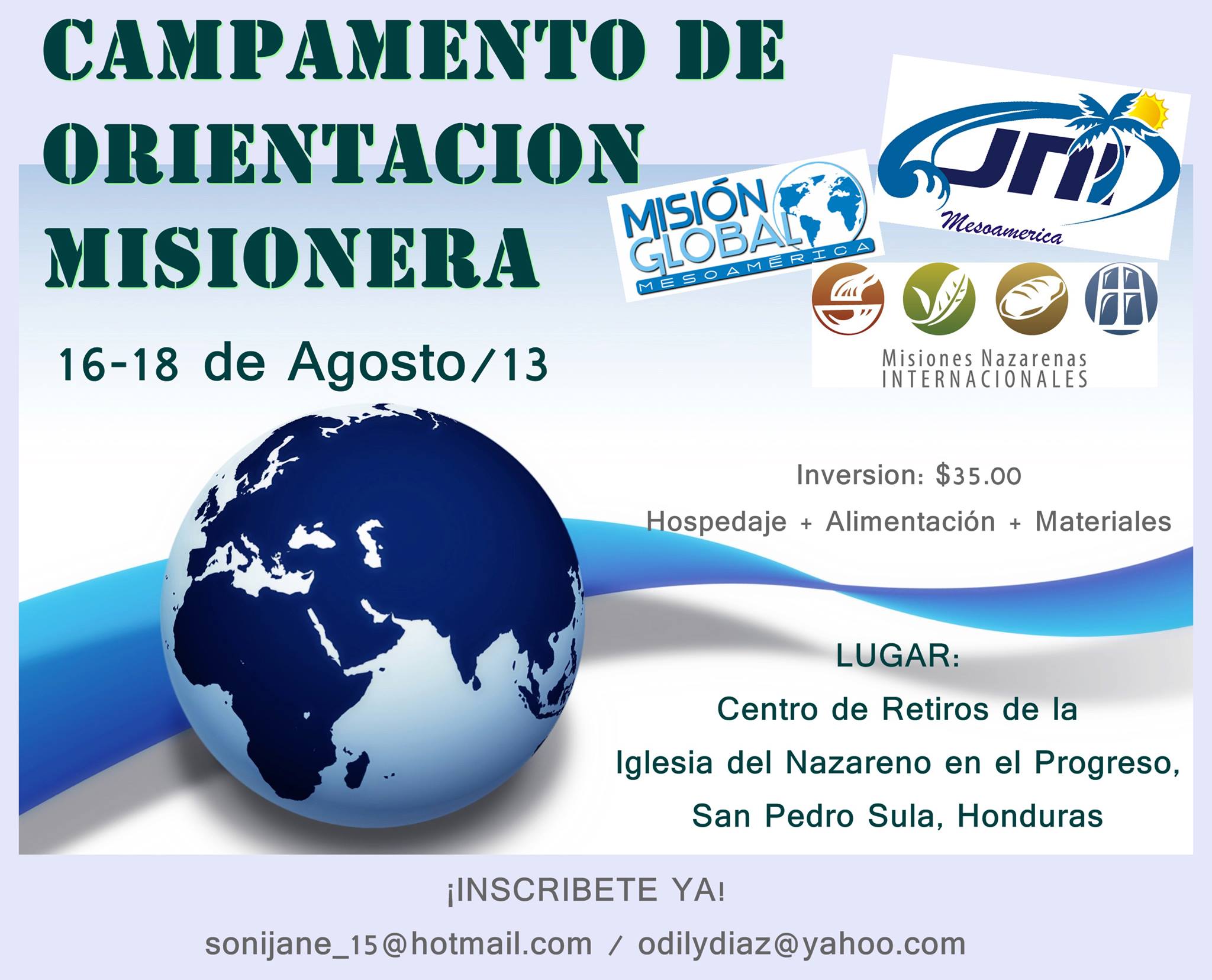 Campamento de Orientación Misionera – San Pedro Sula, Honduras 8.954007 -79.538894 Comparte esto: Haz clic para compartir en Facebook (Se abre en una ventana nueva) Facebook Haz clic para compartir en X (Se abre en una ventana nueva) X Haz clic para enviar un enlace por correo electrónico a un amigo (Se abre en una ventana nueva) Correo electrónico Me gusta Cargando... Relacionado Deja un comentario Cancelar la respuesta Δ