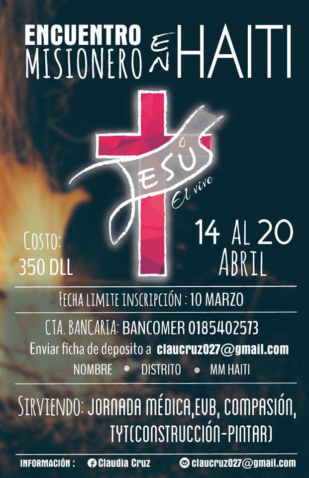 Apreciables hermanos en Cristo. Ignoro desde cuando se planeo este encuentro, pero es una magnifica oportunidad de servicio para quienes ya hemos asistido a eventos de ayuda en este amado país. Pero si el aviso hubiese llegado desde ese momento, quizás algunos como nosotros planearíamos con suficiente tiempo nuestra participación. Dios les bendice.