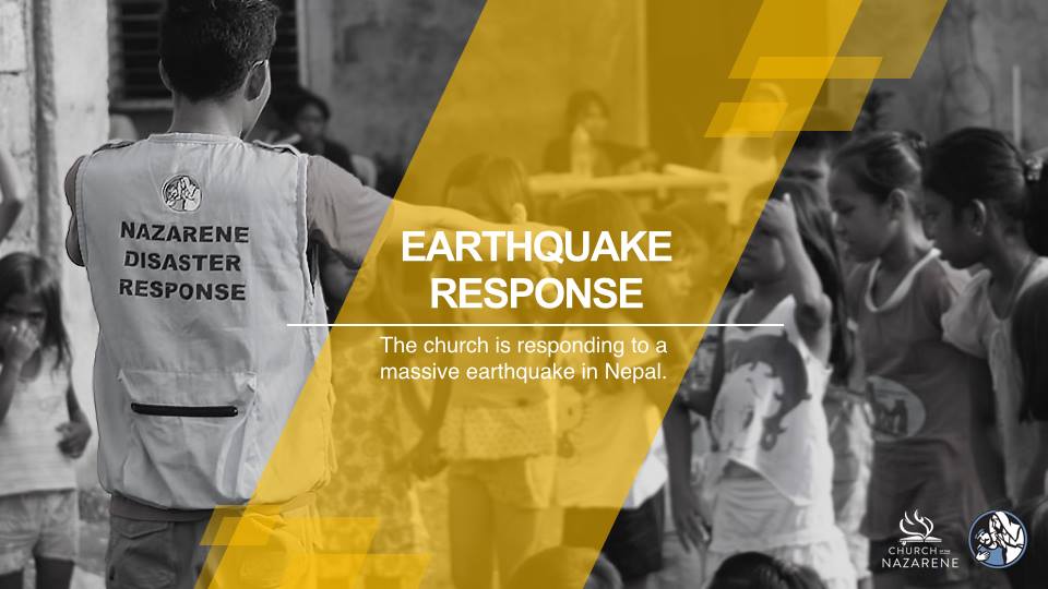 El 25 de abril, un terrible terremoto azotó al país de Nepal. Al momento de escribir estas noticias, se cree que el total de muertos es de más de 10 mil personas. China y la India, países vecinos a Nepal, también sufrieron pérdidas de vidas y materiales. Los sobrevivientes están sufriendo dolor por la pérdida de seres queridos hogares y fuentes de ingresos; también están sufriendo porque se les están agotando el agua, la comida y los suministros básicos. Los Ministerios Nazarenos de Compasión están respondiendo a esta tragedia junto a otras organizaciones humanitarias. Pedimos sus oraciones por aquellas personas afectadas por el terremoto del 25 de abril. La siguiente es una lista del trabajo específico que la Iglesia del Nazareno está realizando en Nepal y peticiones de oración: