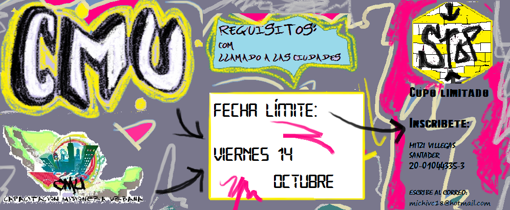 Misión Global del Distrito Centro de México invita a CMU (Capacitación Misionera Urbana) del 21 al 23 de octubre, 2016. Para más información contacta a Mitzi Villegas Carmona: michivc18@hotmail.com