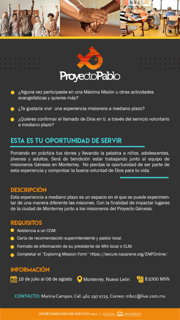 Proyecto Pablo México: 2021 Comparte esto: Comparte en Facebook (Se abre en una ventana nueva) Facebook Compartir en X (Se abre en una ventana nueva) X Enviar un enlace a un amigo por correo electrónico (Se abre en una ventana nueva) Correo electrónico Me gusta Cargando... Relacionado Deja un comentario Cancelar la respuesta Δ