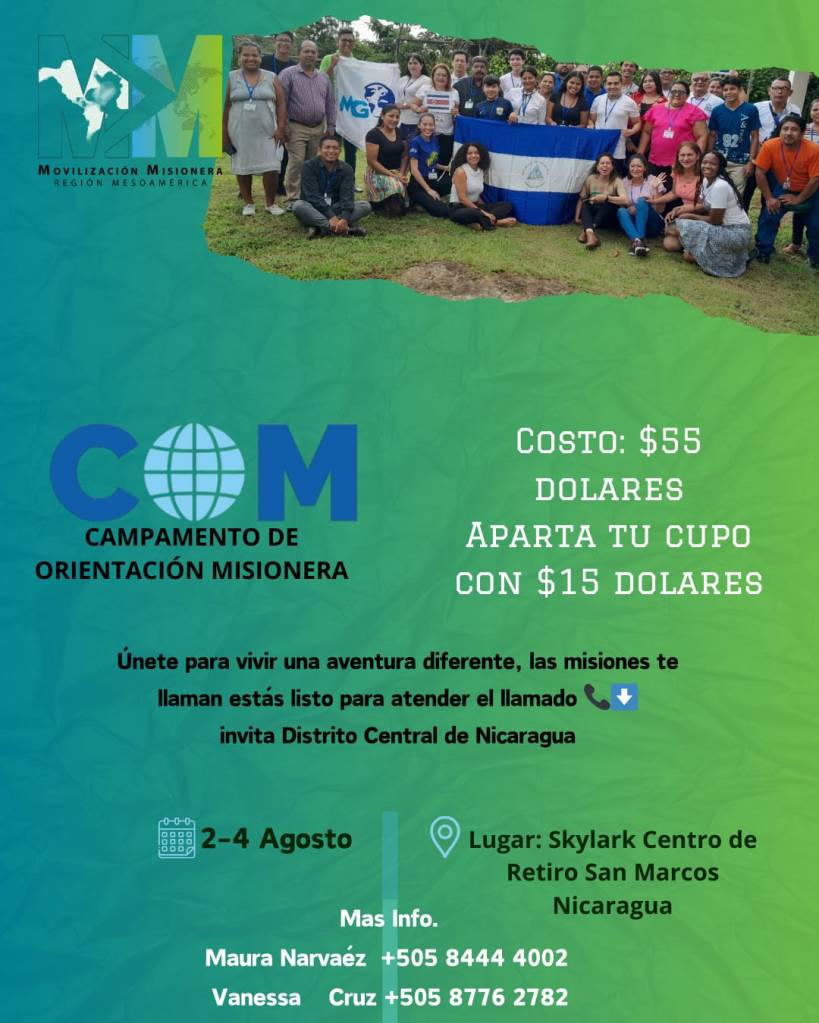 Campamento de Orientación Misionera (COM): Nicaragua Comparte esto: Haz clic para compartir en Facebook (Se abre en una ventana nueva) Facebook Haz clic para compartir en X (Se abre en una ventana nueva) X Haz clic para enviar un enlace por correo electrónico a un amigo (Se abre en una ventana nueva) Correo electrónico Me gusta Cargando... Relacionado Deja un comentario Cancelar la respuesta Δ